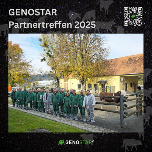 Ende Oktober fand das diesjährige zweitägige Partnertreffen von Genostar in der Steiermark und in Niederösterreich statt. Die Teilnehmer kamen aus Österreich, Deutschland und Tschechien und konnten sich an den beiden Tagen intensiv fachlich austauschen. Besichtigt wurden Kuhfamilien von aktuellen Jungstieren und genetisch wertvollen Kandidaten, Töchter von überragenden Altstieren sowie die im Gemeinschaftsbesitz stehenden Stiere an den beiden Standorten Kagelsberg und Gleisdorf.
