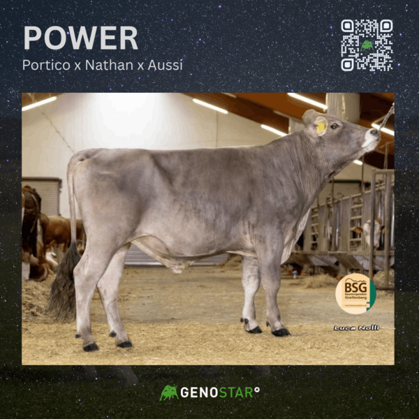 Betriebe mit klarem Fokus auf Milchleistung sollten einen Blick auf die zahlreichen Dacapo-Söhne werfen. Sie sind nicht nur im Spitzenfeld nach GZW vertreten, sondern vererben auch mehr als +1200 kg Milch. Dazu zählen unter anderem DARBY, DUNCAN PS, DIABLO, DAREON und DACIA. Ebenfalls hohe Milchmengen liefern VALMONT PS, PORTICO und dessen Sohn POWER. Letzterer überzeugt mit einem ansprechenden Linearprofil sowie über +1500 kg Milch. Als Sohn aus Nathan Highlight präsentiert er sich insgesamt sehr harmonisch – sowohl im Fitnessbereich als auch im Exterieur ohne erkennbare Schwächen – und eignet sich damit ideal als Allrounder mit besonderer Stärke in der Leistung.